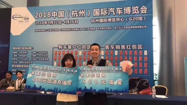 一、2018中國(杭州)國際汽車博覽會由中國汽車流通協(xié)會和浙江省國際商會主辦、百瑞國際會展集團承辦、元通汽車集團特別支持,本屆汽博會展出總面積8萬多平方米,聚集國內(nèi)外主流汽車品牌共703款車型,覆蓋了轎車、跑車、SUV、MPV、新能源車、特種車、豪華車等汽車全產(chǎn)業(yè)鏈產(chǎn)品,2018第一季度即將上市車型和已上市新款車型,也都在汽車博覽會期間同浙江汽車愛好者見面。5天來,觀眾累計達到9.2萬人次,最多一天突破3.8萬人次,觀眾觀展及購車的熱情和參與度歷史空前,由眾泰新能源汽車有限公司傾情贊助的眾泰E200獎品車,于4月14日被報名觀眾抽走,并舉辦了隆重的贈車頒獎儀式。