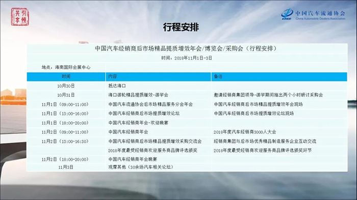 1、中國汽車流通協(xié)會后市場精品服務(wù)分會年會;