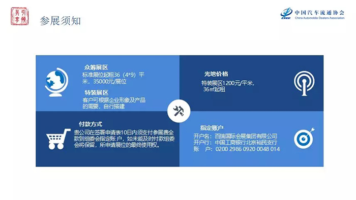 2、所有參展企業(yè)根據(jù)展位面積分會給予名額,參加中國汽車經(jīng)銷商年會(奔馳)歡迎晚宴及30余場汽車相關(guān)論壇。與行業(yè)大咖近距離深度交流。