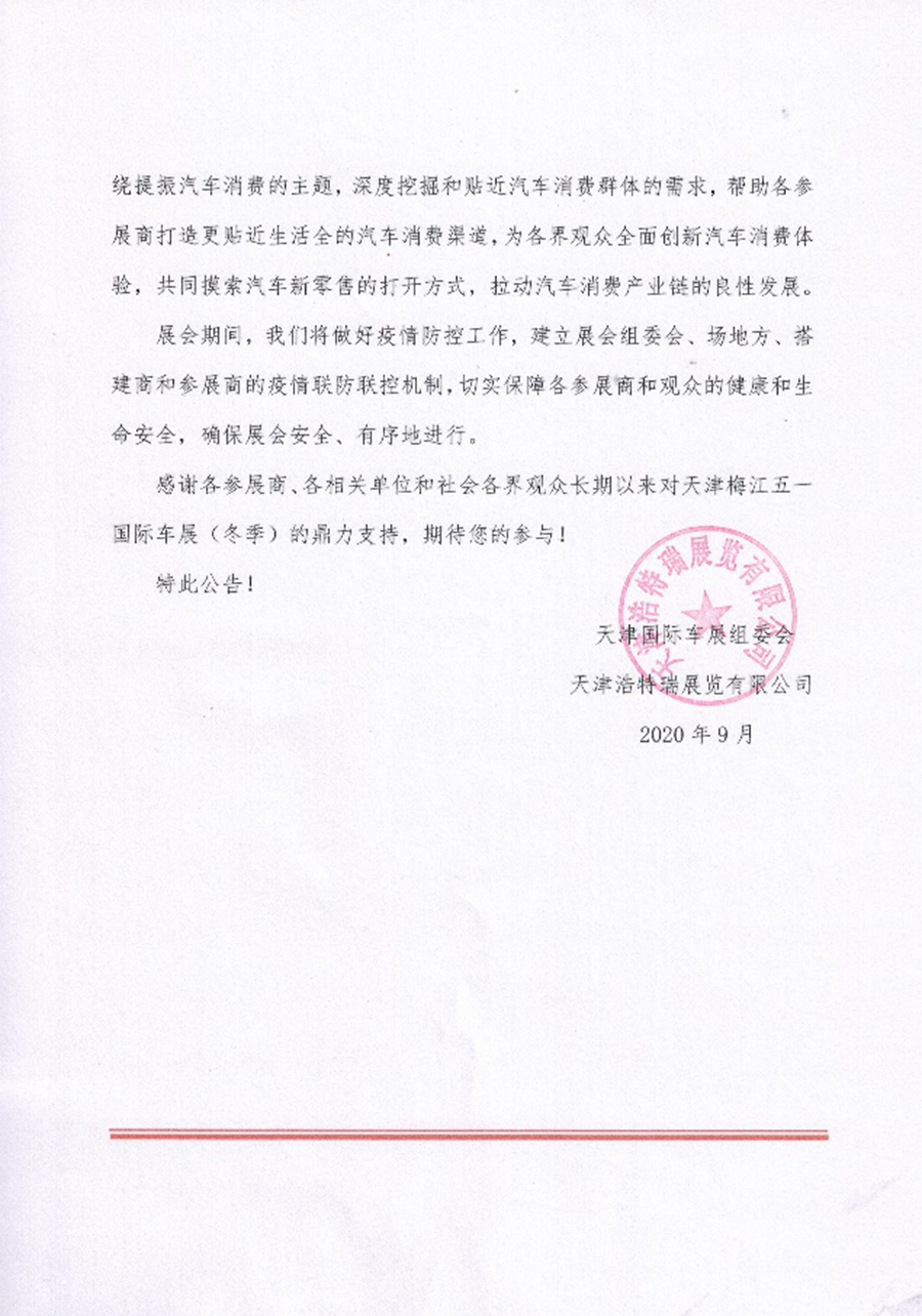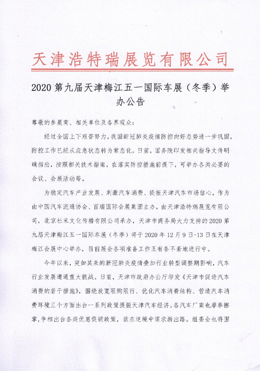 團(tuán)結(jié)一致,共克時(shí)艱,再創(chuàng)輝煌,12月9日-13日,共同見(jiàn)證2020冬季天津國(guó)際車(chē)展的非凡魅力!