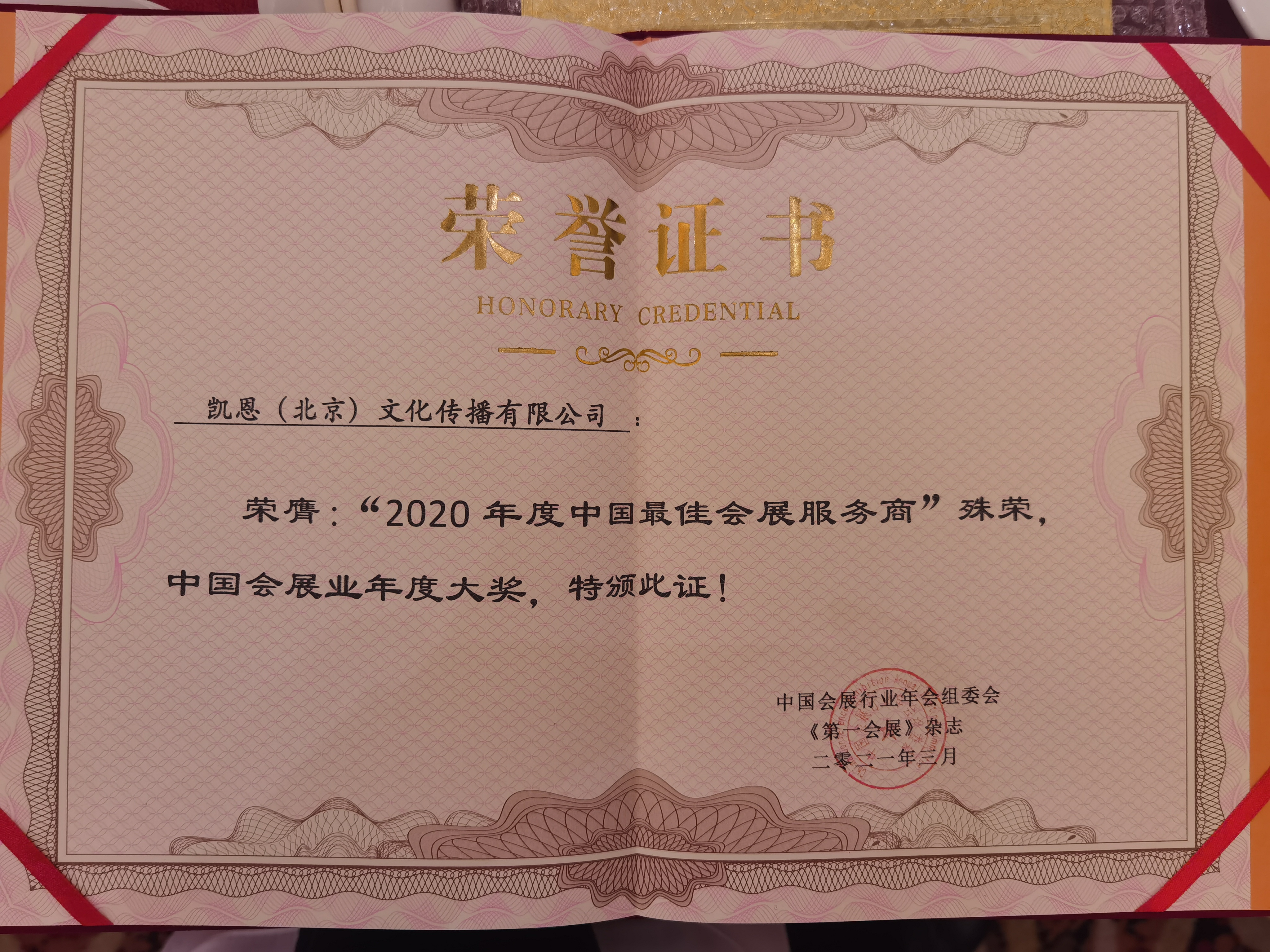 百瑞集團榮獲“2020年度中國最佳會展服務(wù)商”殊榮