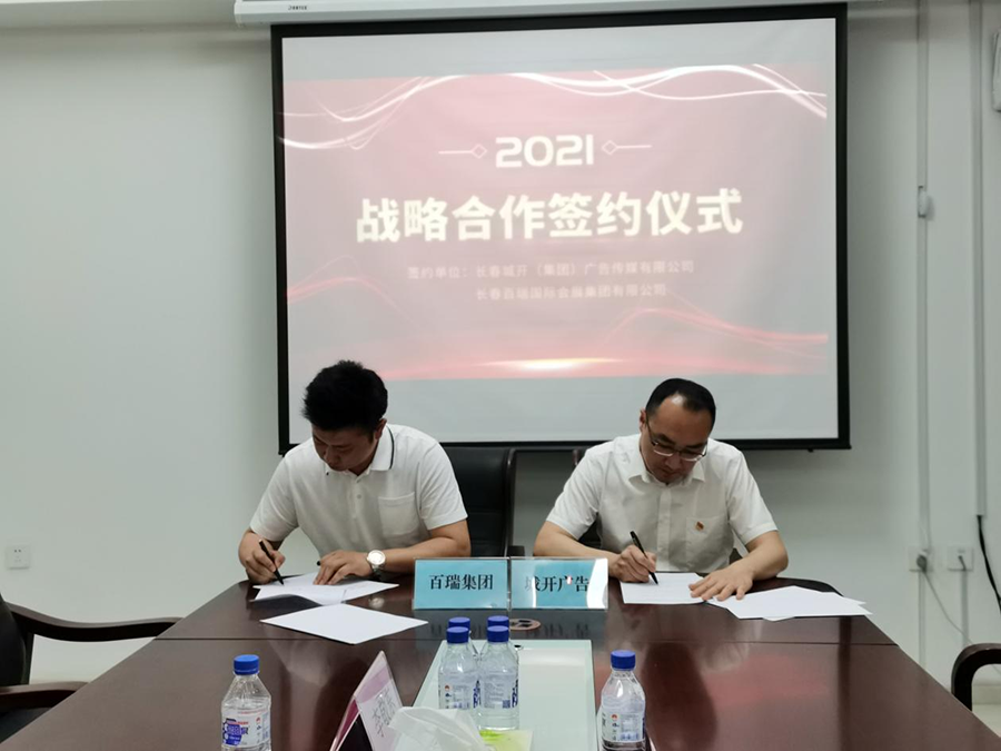 2021年6月18日,百瑞國(guó)際會(huì)展集團(tuán)有限公司與長(zhǎng)春城開(kāi)(集團(tuán))廣告?zhèn)髅接邢薰竞炇鹆藨?zhàn)略合作協(xié)議。