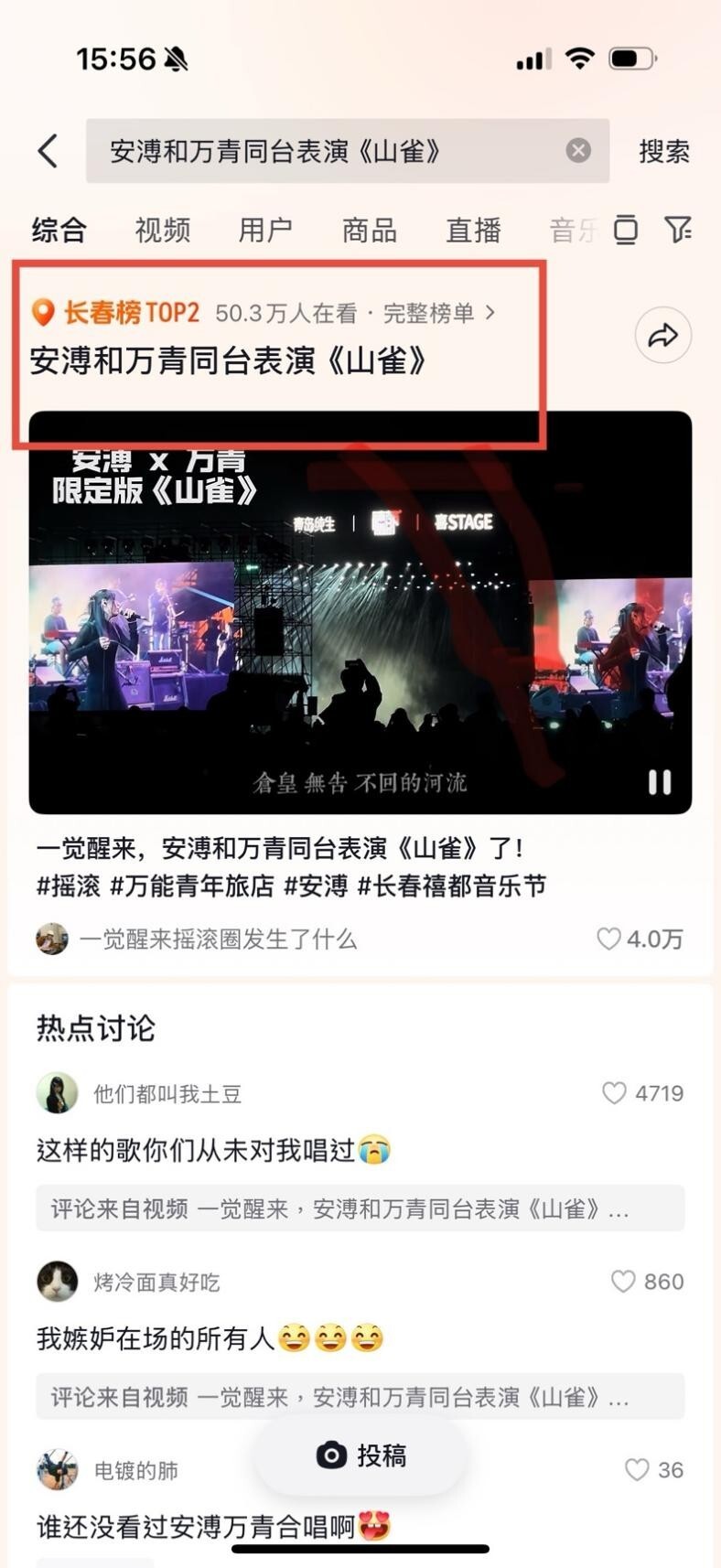 本屆禧都音樂節(jié)長(zhǎng)春站在社交媒體上掀起巨大討論熱潮。抖音話題:長(zhǎng)春禧都音樂節(jié)1.2億次播放;話題:禧都音樂節(jié)8千萬(wàn)次播放。其中,安溥和萬(wàn)青同臺(tái)表演《山雀》、九寶薩滿合體、長(zhǎng)春音樂節(jié)太好蹦了、禧都音樂節(jié)在長(zhǎng)春炸場(chǎng)了、和TT一起看煙花等內(nèi)容在互聯(lián)網(wǎng)火爆傳播、頻頻刷屏,吸引著全國(guó)人民的關(guān)注。